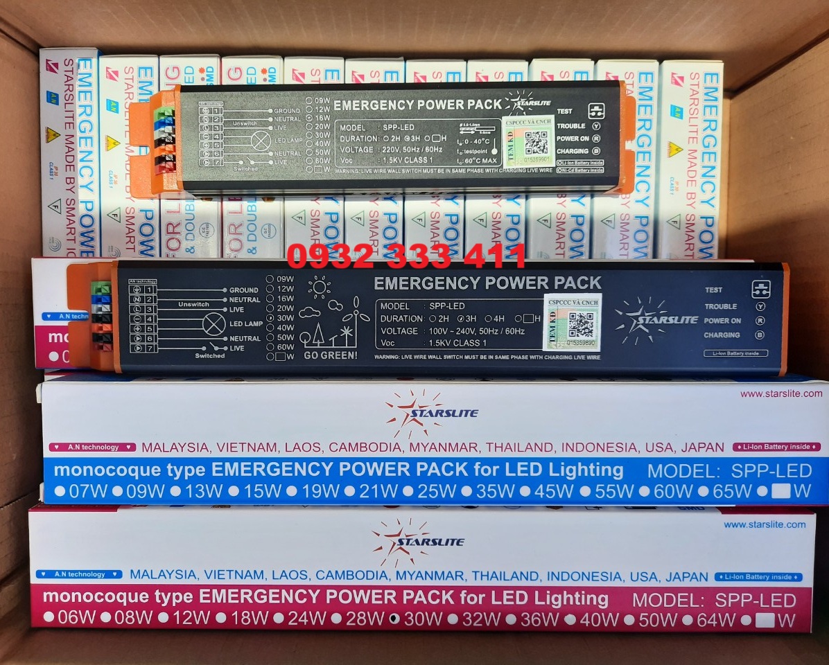 Bộ lưu điện STARSLITE SPP-LED 40W-48W dùng cung cấp điện dự phòng cho đèn LED panlel/ downlight/ Linear hoạt động trong trường hợp có sự cố hoặc khẩn cấp giúp cho việc hỗ trợ thoát nạn và cứu nạn đễ dàng.