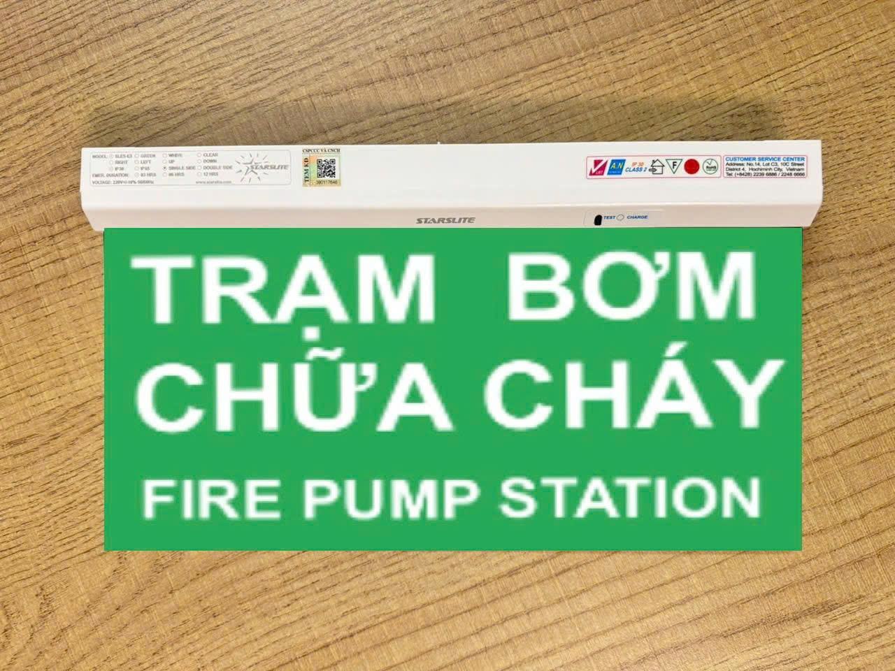 - Thiết kế nền xanh chữ trắng để báo tình trạng hệ thống bơm chữa cháy.