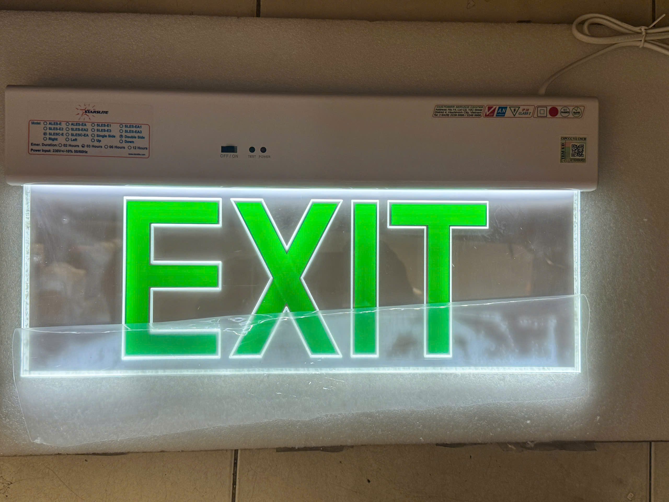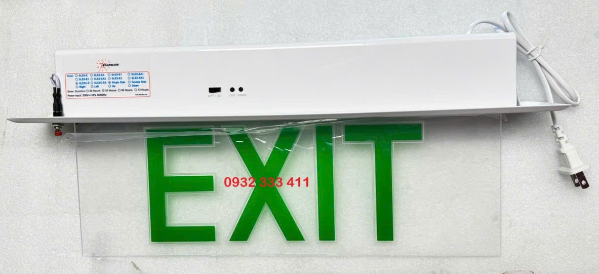 - Đèn exit được sạc 12 giờ dùng chiếu sáng 2-3 giờ khi mất điện.