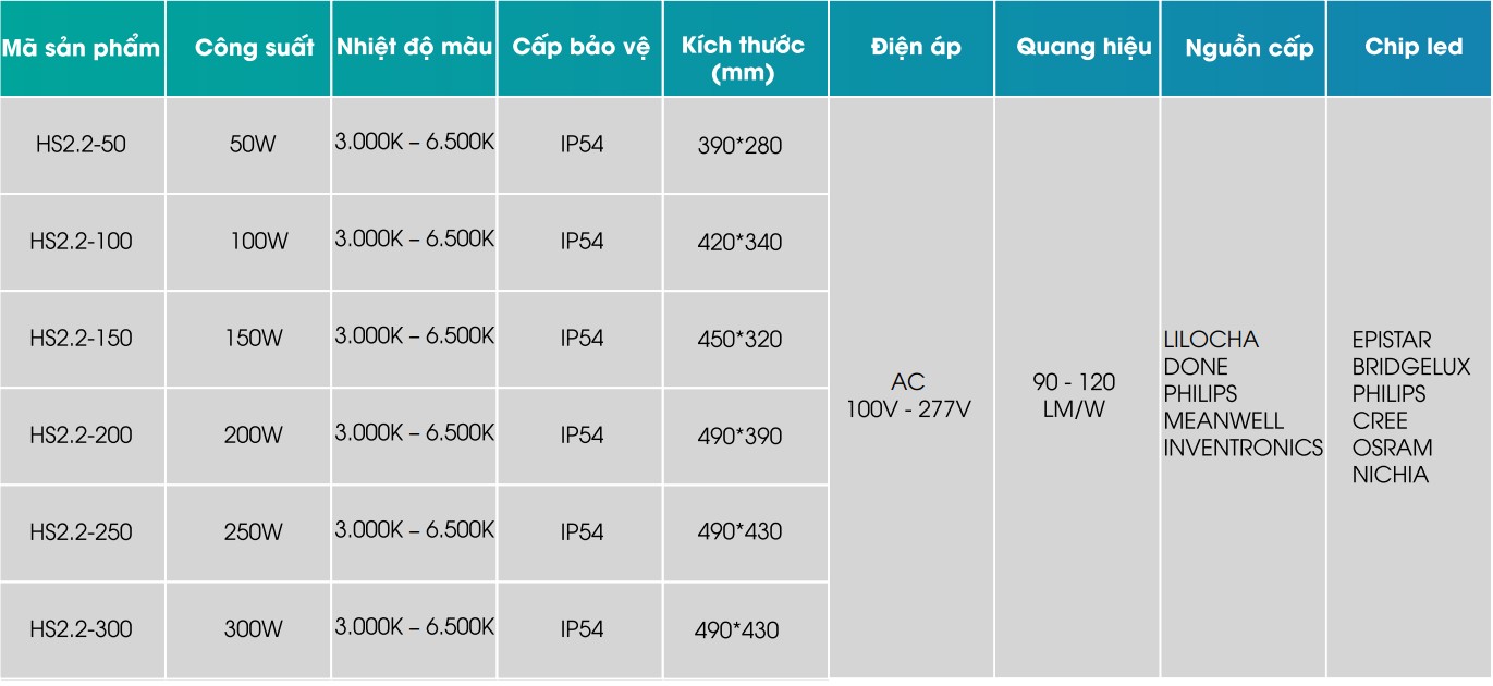 ĐÈN LED NHÀ XƯỞNG HS2.2-50W/ 100W/ 150W/ 200W/ 250W/ 300W
